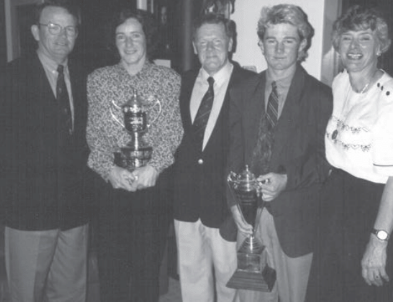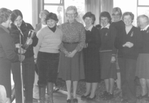 Winning the 1983 MPDGAA Division One Pennant – (from left) President Joan Wilson presenting VLGU pennant cup to team captain Jenny Jeffreys